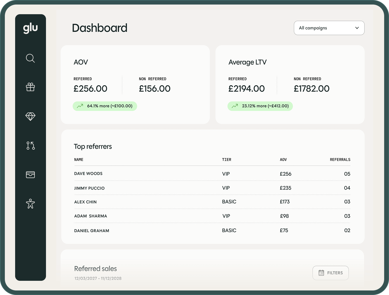 Most referral programmes feel transactional. Glu turns basic codes into personalised gift cards that customers are proud to share with friends.